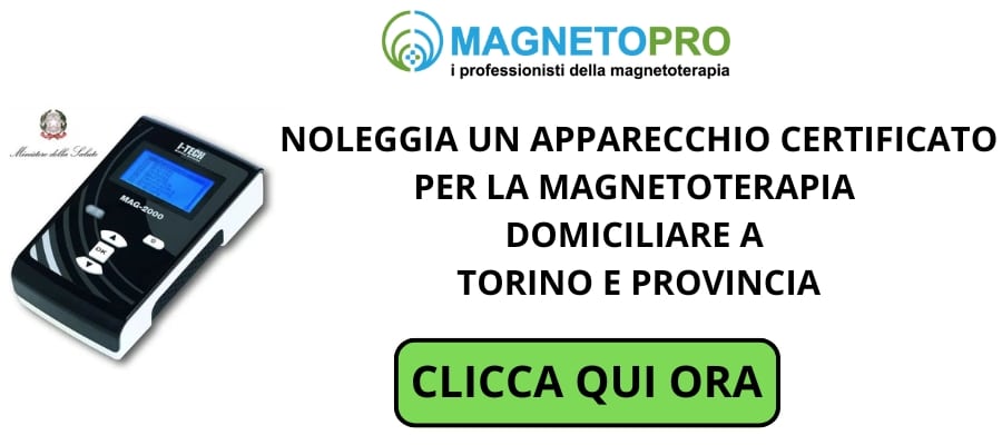 La nostra società MAGNETOPRO noleggia a Torino degli apparecchi di magnetoterapia domiciliare potenti ed efficaci quanto quelli professionali come il Mag 2000 che trovate in noleggio cliccando questo link ad un costo di soli 98 euro per 30 giorni comprensivi di consegna a domicilio in 36/48 ore in tutta la città di Torino.